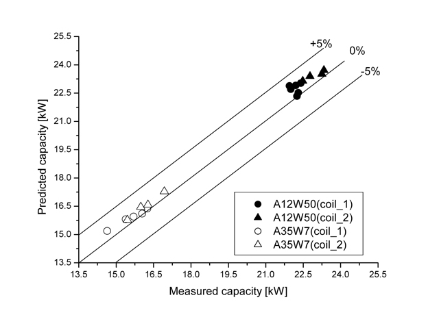 Validation of a 16 kW chiller working in both heating and cooling mode with two different coil designs.